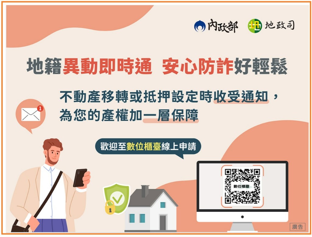 這樣的服務能夠讓您在發生土地或不動產異動時,即時收到通知,並可迅速與所在地的地政事務所聯繫,避免成為房地盜賣詐騙的受害者,從而保障您的財產安全。
